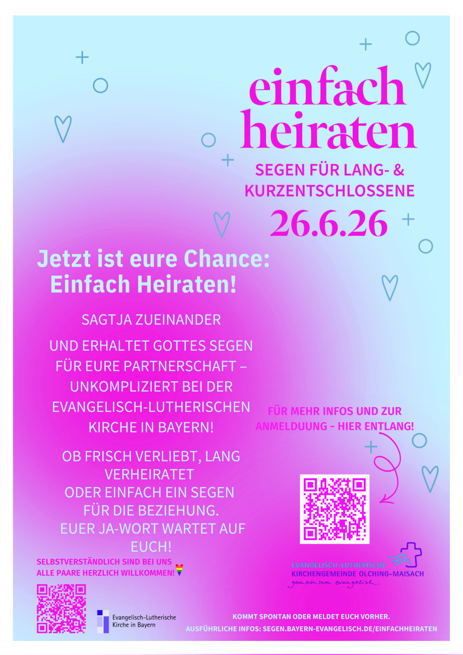 Anmeldung über das Pfarramt (Tel. 08141 / 3608-00 oder pfarramt.eichenau@elkb.de)