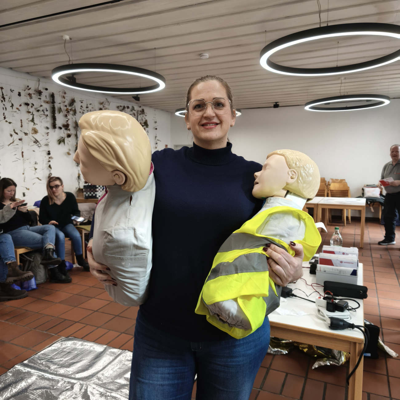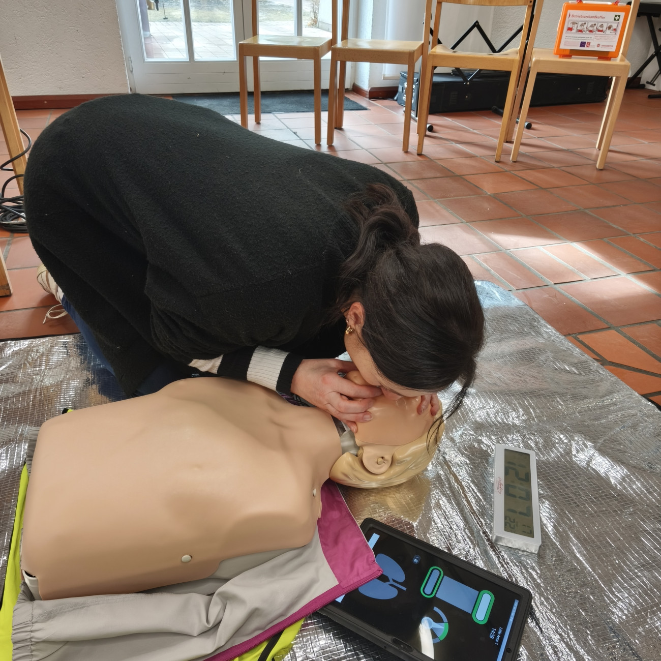 Im Kurs wurden wichtige Maßnahmen wie die stabile Seitenlage, Wiederbelebung, das richtige Verhalten bei Verletzungen sowie Erste Hilfe bei typischen Notfällen im Kindergartenalltag aufgefrischt und praktisch geübt. Alle Teilnehmenden konnten ihr Wissen erneuern, Sicherheit gewinnen und offene Fragen klären.